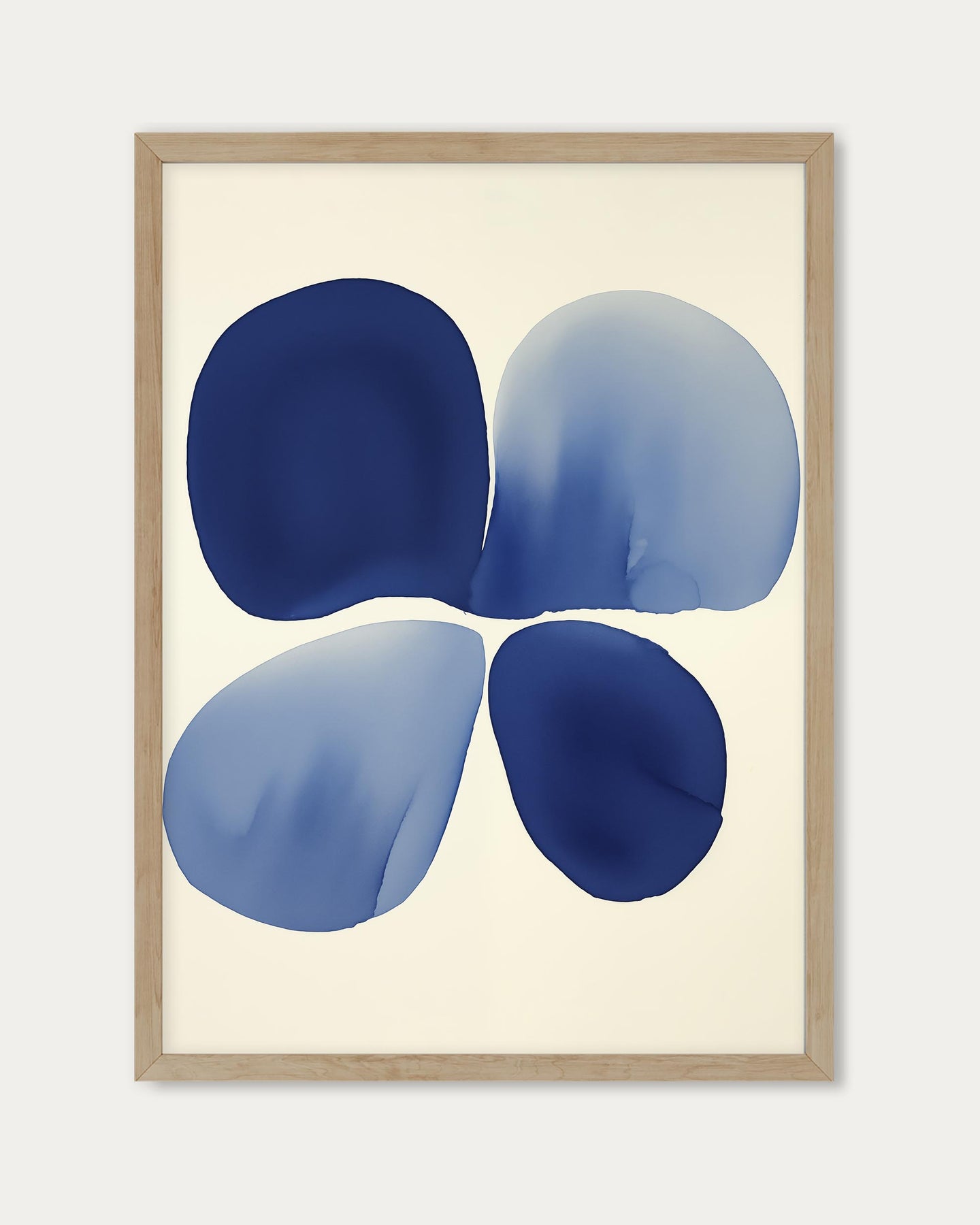 The Organic Blue Art Print showcases a captivating abstract painting featuring flowing blue organic shapes set against a warm beige background. This elegant artwork adds a serene and modern touch to any space, perfect for enhancing your décor with natural-inspired beauty and contemporary sophistication.