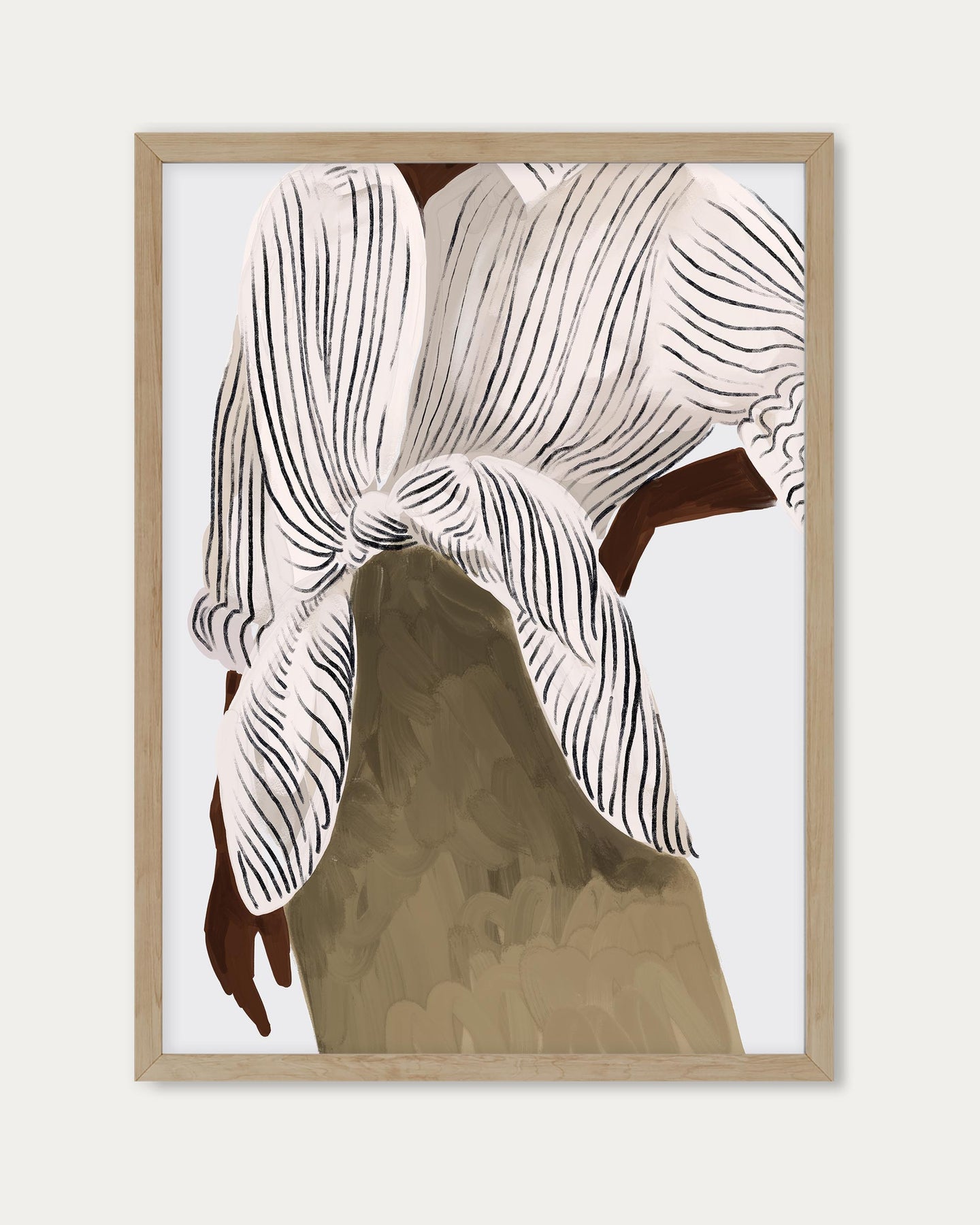 The Fashion 01 Art Print features a modern figurative fashion sketch capturing a stylish pose. This sleek and expressive artwork adds a contemporary and artistic flair to any space, perfect for enhancing your décor with chic sophistication and creative energy.