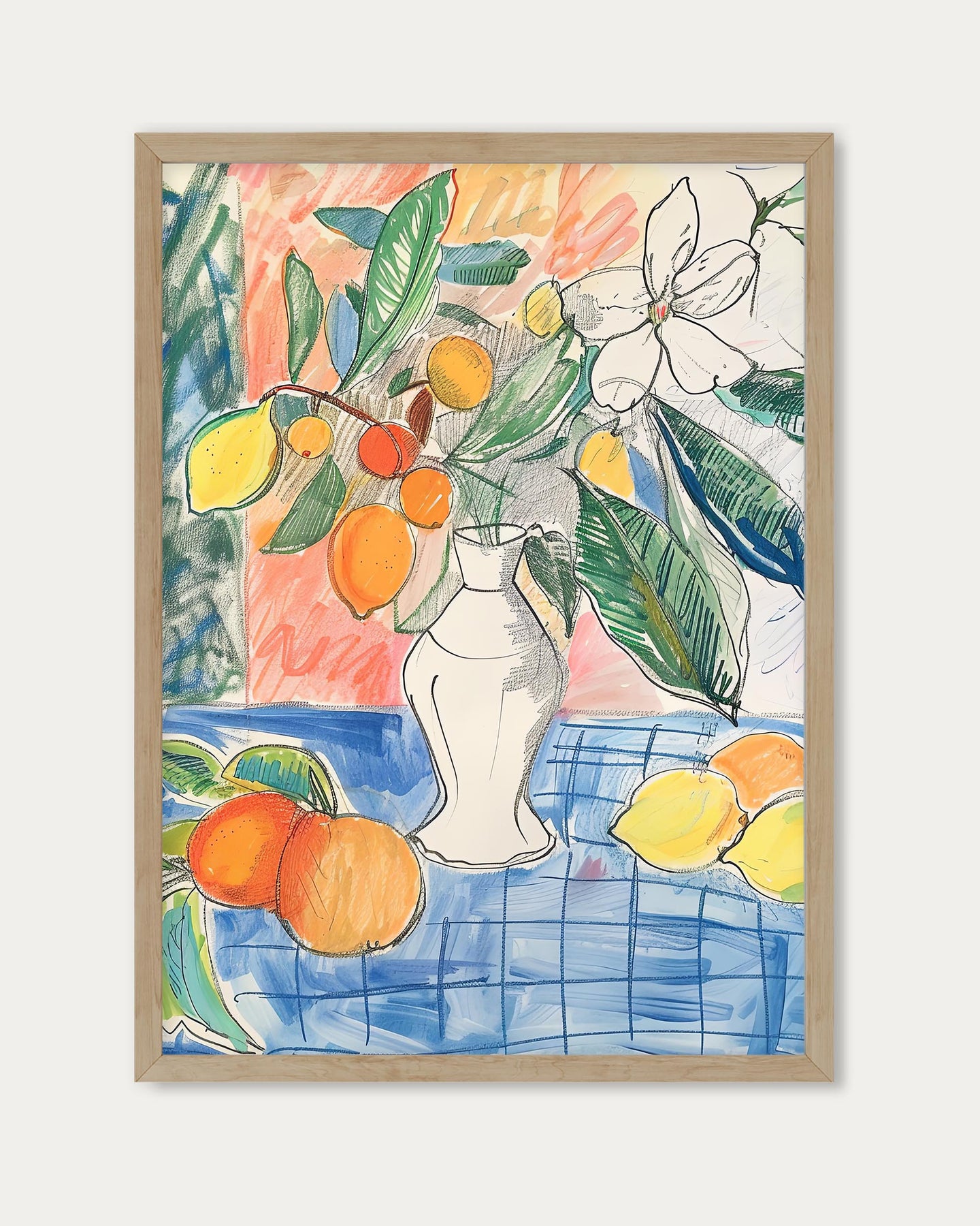 The Relaxed Afternoon II Wall Art features a colourful botanical still life rendered in delicate colouring pencil sketch style. This charming artwork brings a fresh and lively touch to any space, perfect for adding natural beauty and artistic warmth to your décor.