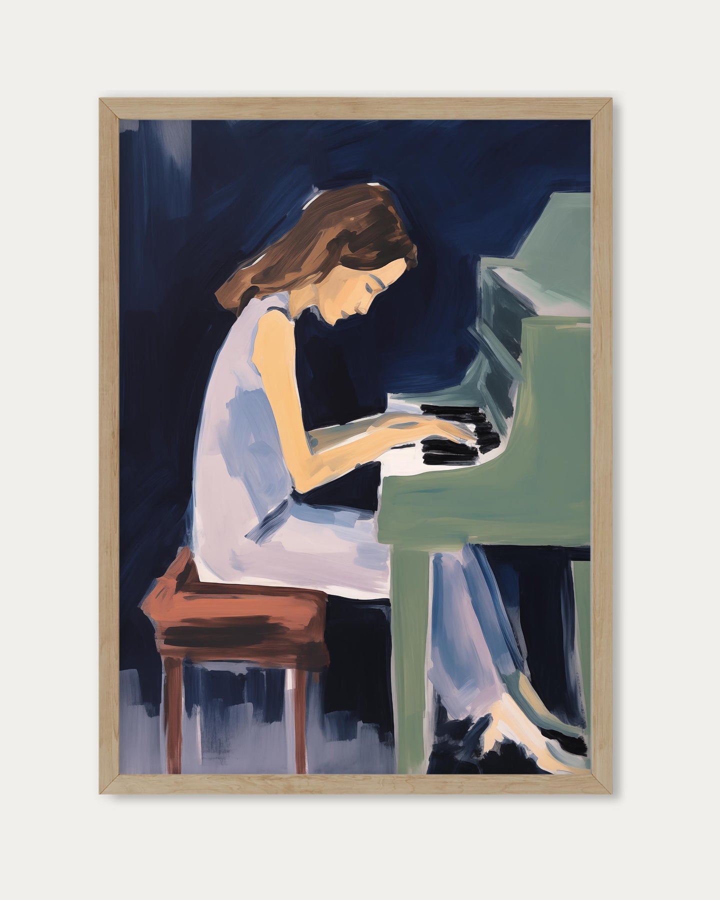 The Piano Player Art Print captures a graceful moment of a woman playing the piano, rendered with expressive detail and warmth. This elegant artwork brings a sense of calm and artistic passion to any space, perfect for adding a refined and inspiring touch to your décor.