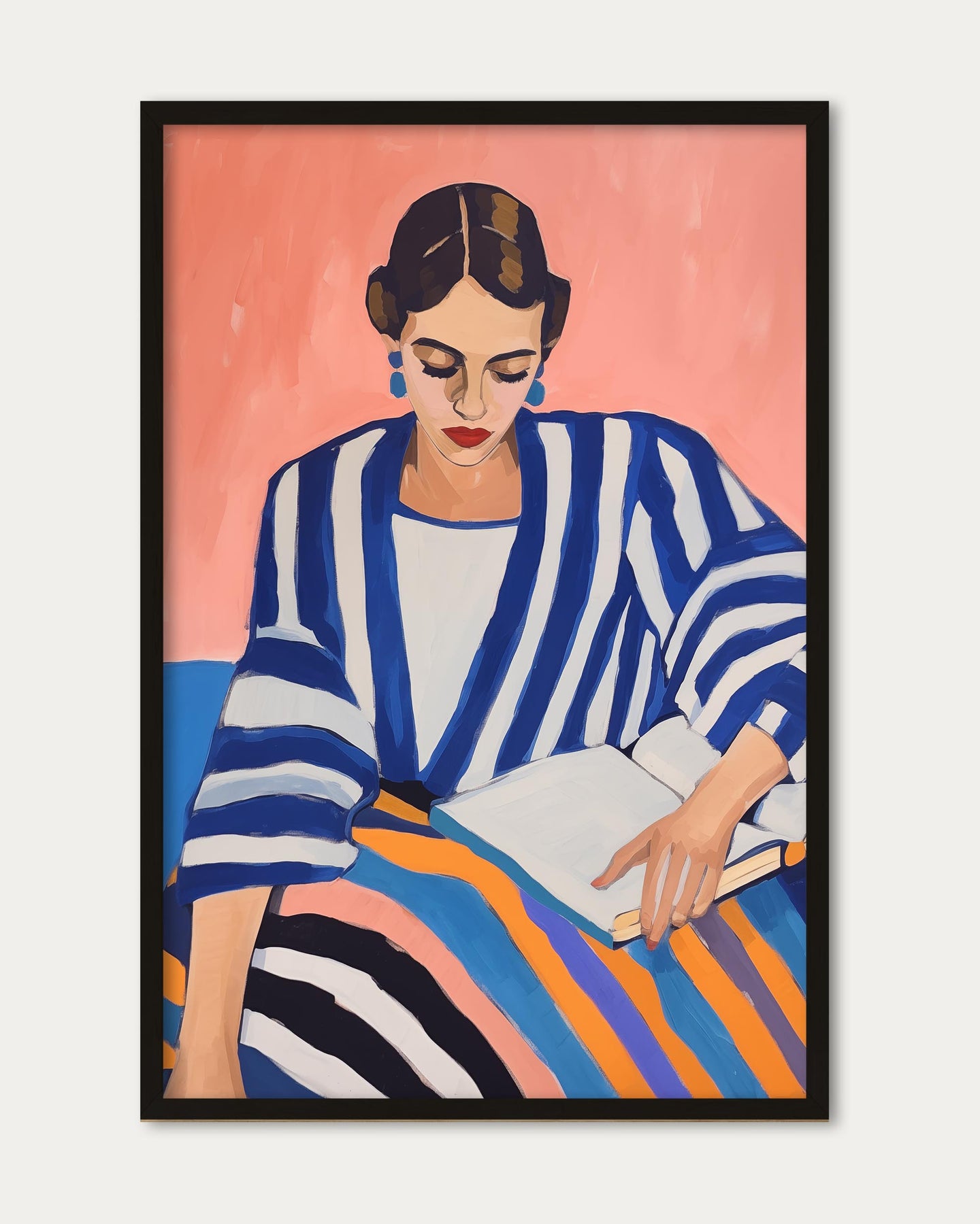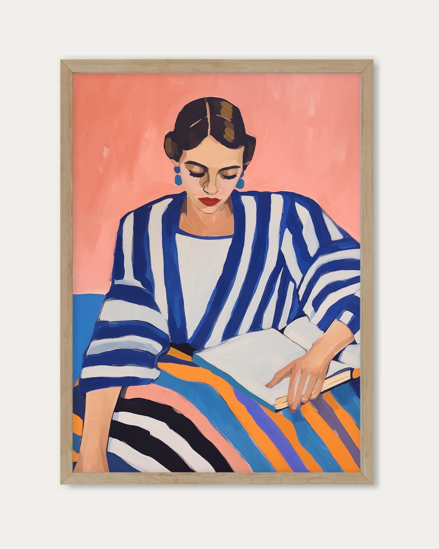 Add vibrant personality to your walls with The Next Chapter Art Print. This colourful portrait of a woman in a striking stripy outfit brings bold style and artistic energy to any space, making it the perfect statement piece for modern decor.