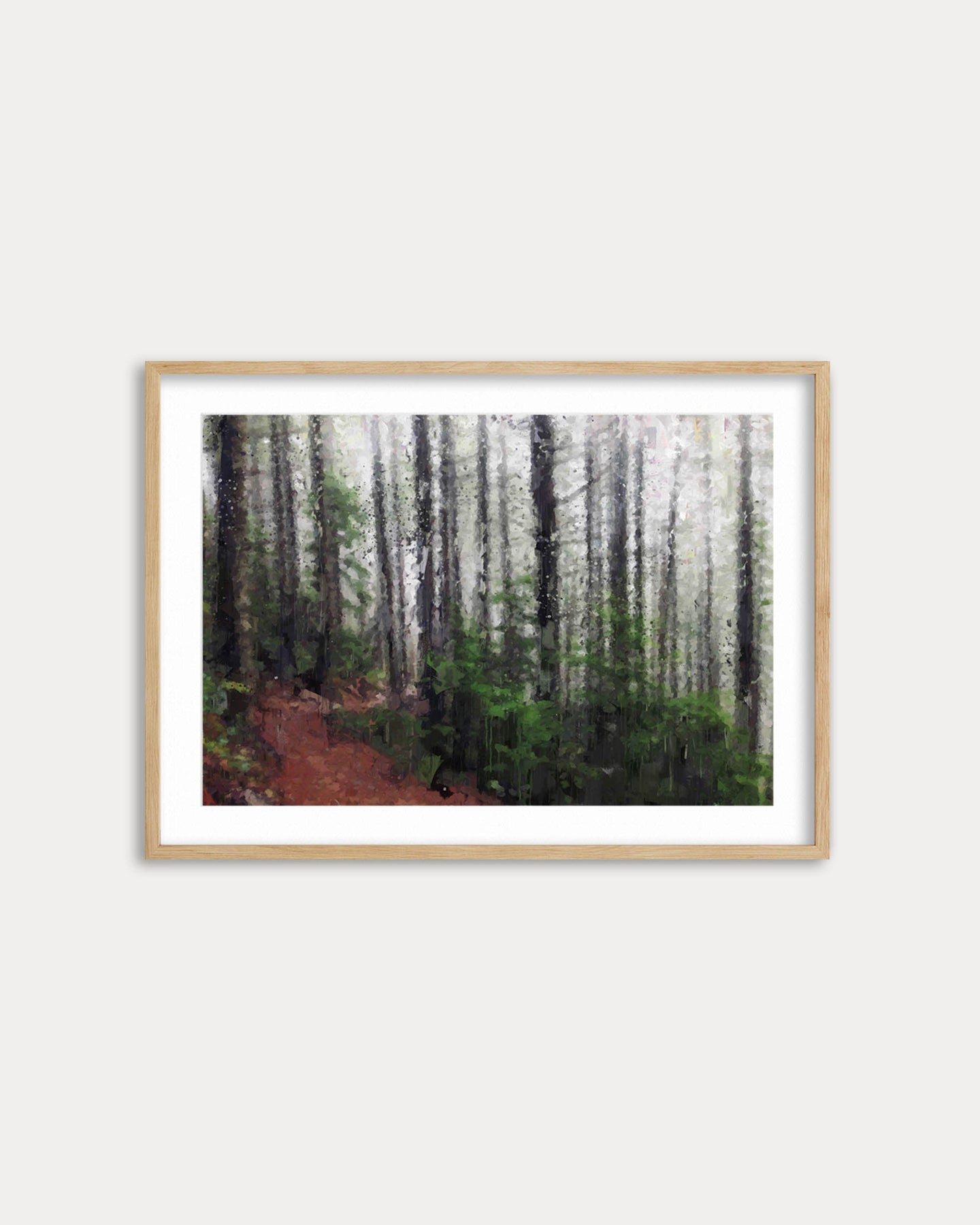 A Path Through The Forest is an eye-catching framed art print that captures the beauty of nature in a unique impressionist style. The vibrant, lush greens of the trees set against an ethereal backdrop create a captivating addition to any space. Allow this stunning wall art to transport you down a path through the forest, and enliven your home with a touch of natural beauty.