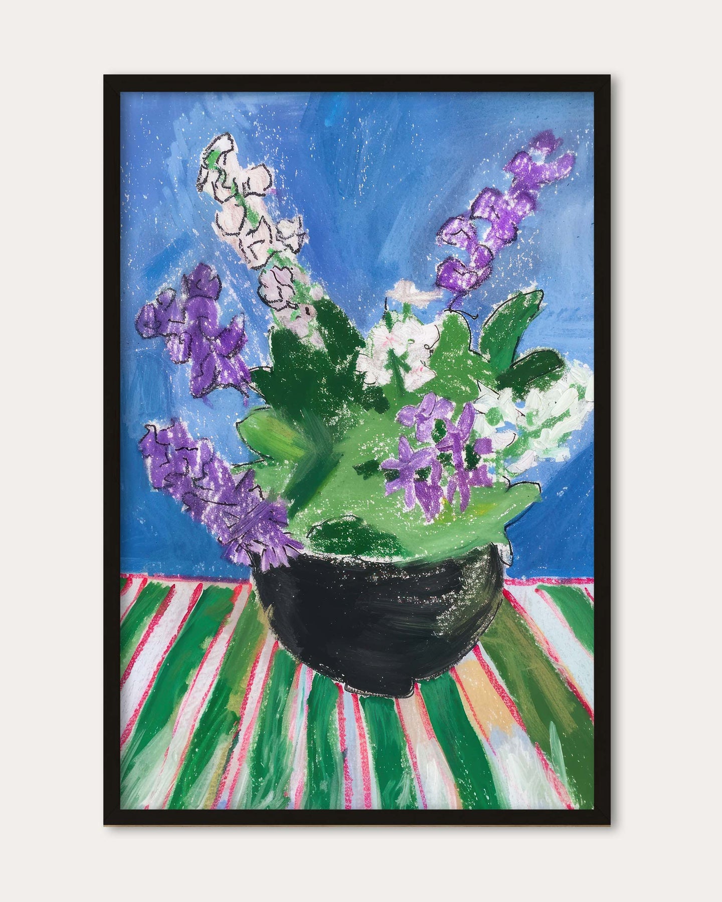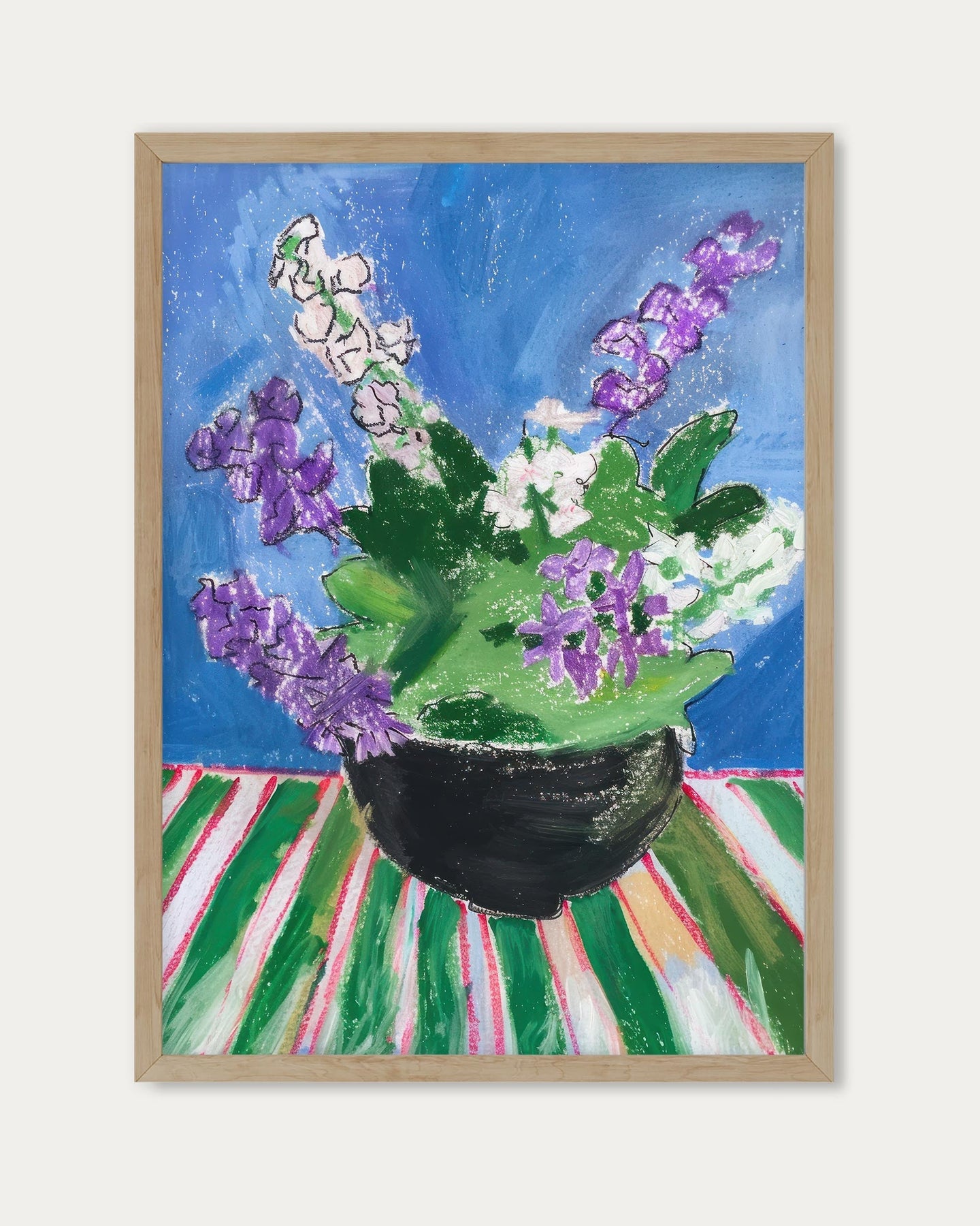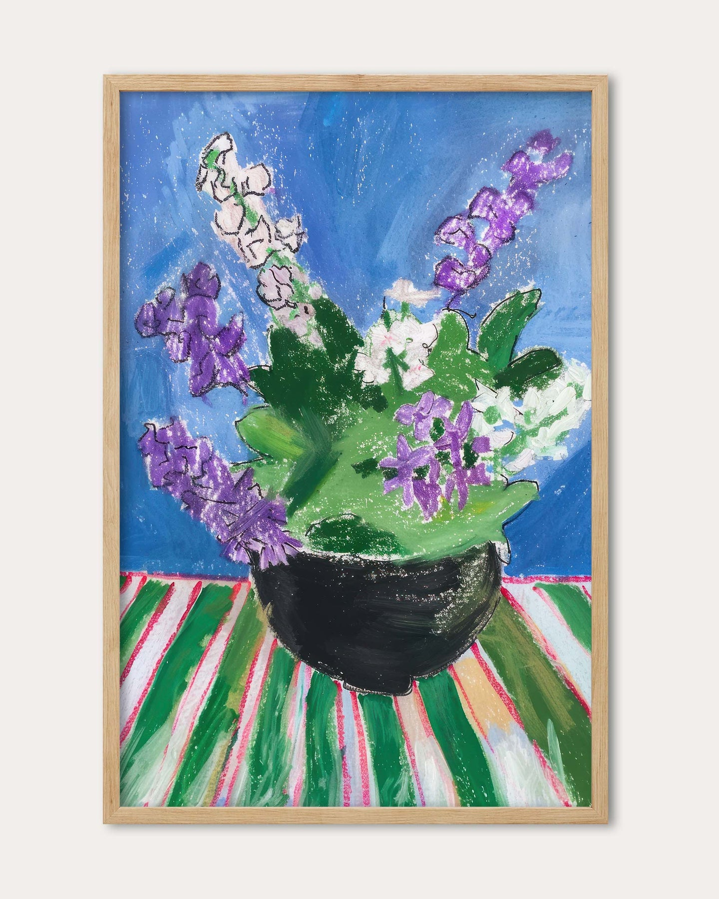 The Green Moss Wall Art features a beautiful painting of wild flowers arranged in a vase, set against a calming blue background. This botanical artwork brings a fresh and natural touch to any space, perfect for adding serene beauty and subtle colour to your décor.