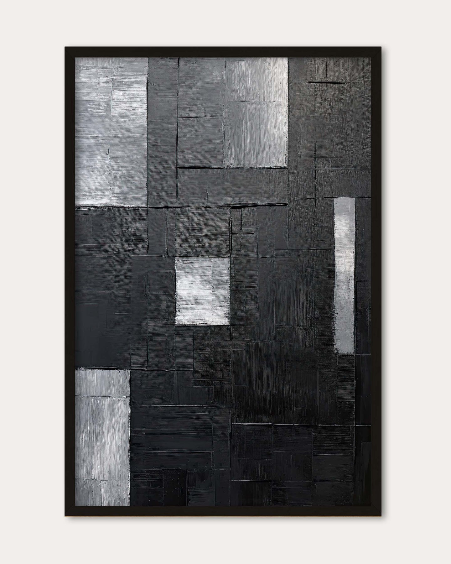 The Mono Abstraction II Art Print is a large canvas featuring a modern black and white geometric abstract design. This striking monochrome artwork adds bold contrast and contemporary sophistication to any space, perfect for making a powerful statement in your décor.