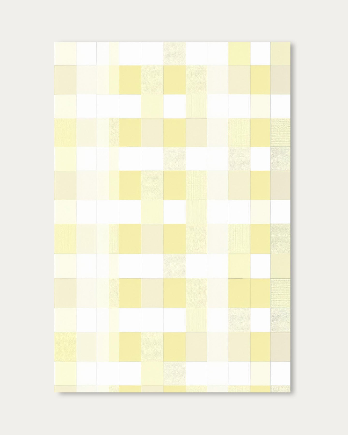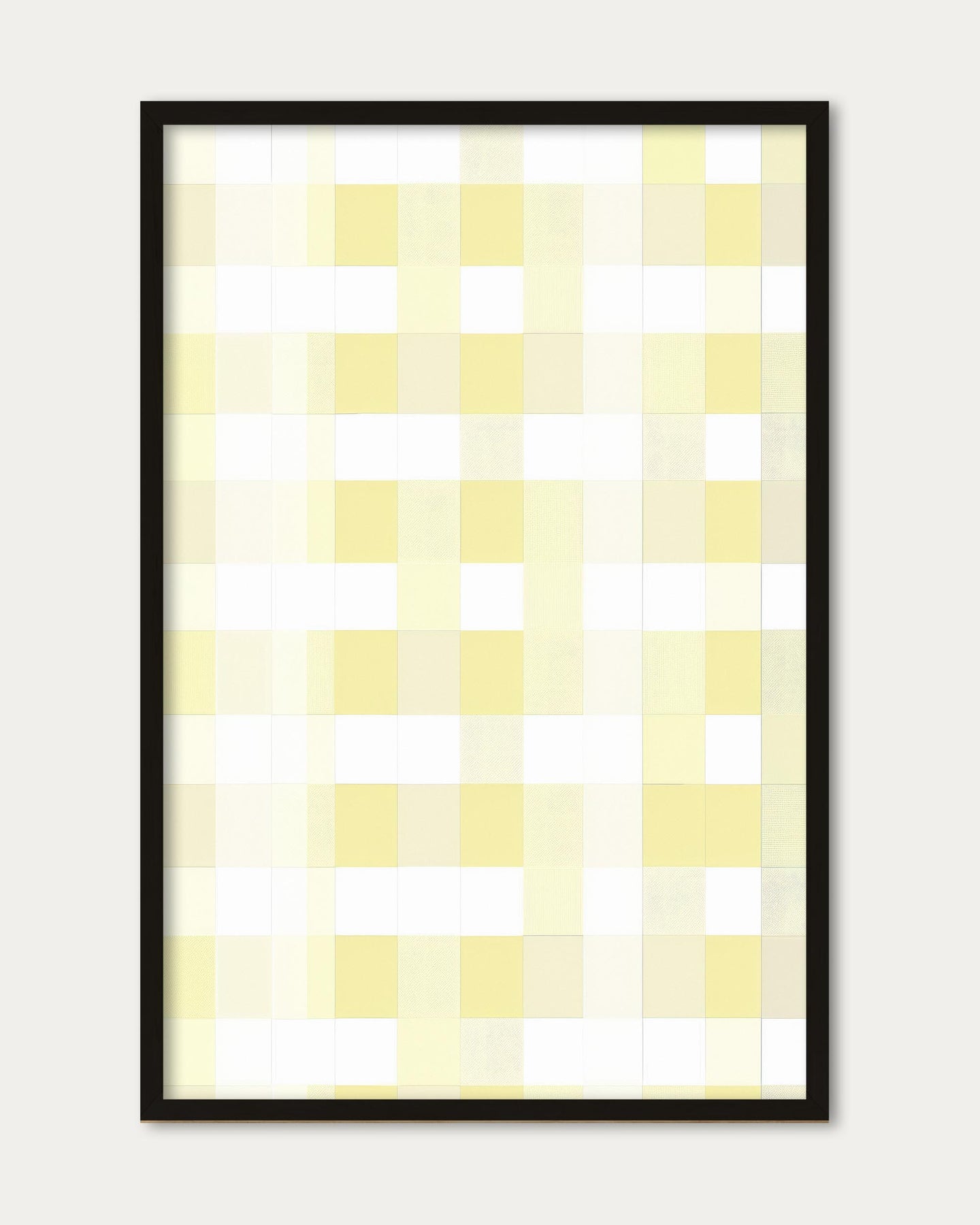 The Yellow Pattern Art Print features a vibrant geometric design in cheerful yellow and crisp white. This lively artwork adds a fresh and modern touch to any space, perfect for brightening your décor with bold shapes and uplifting colour.