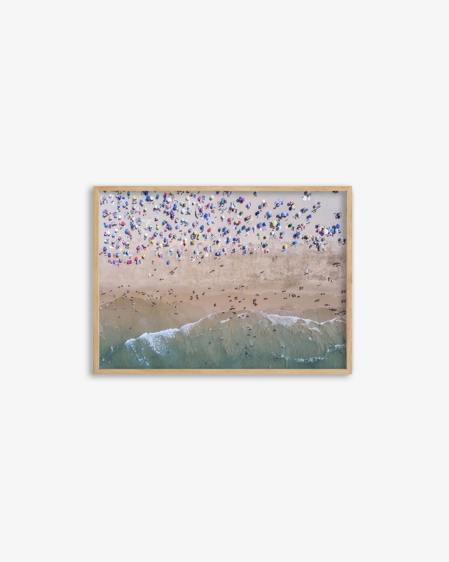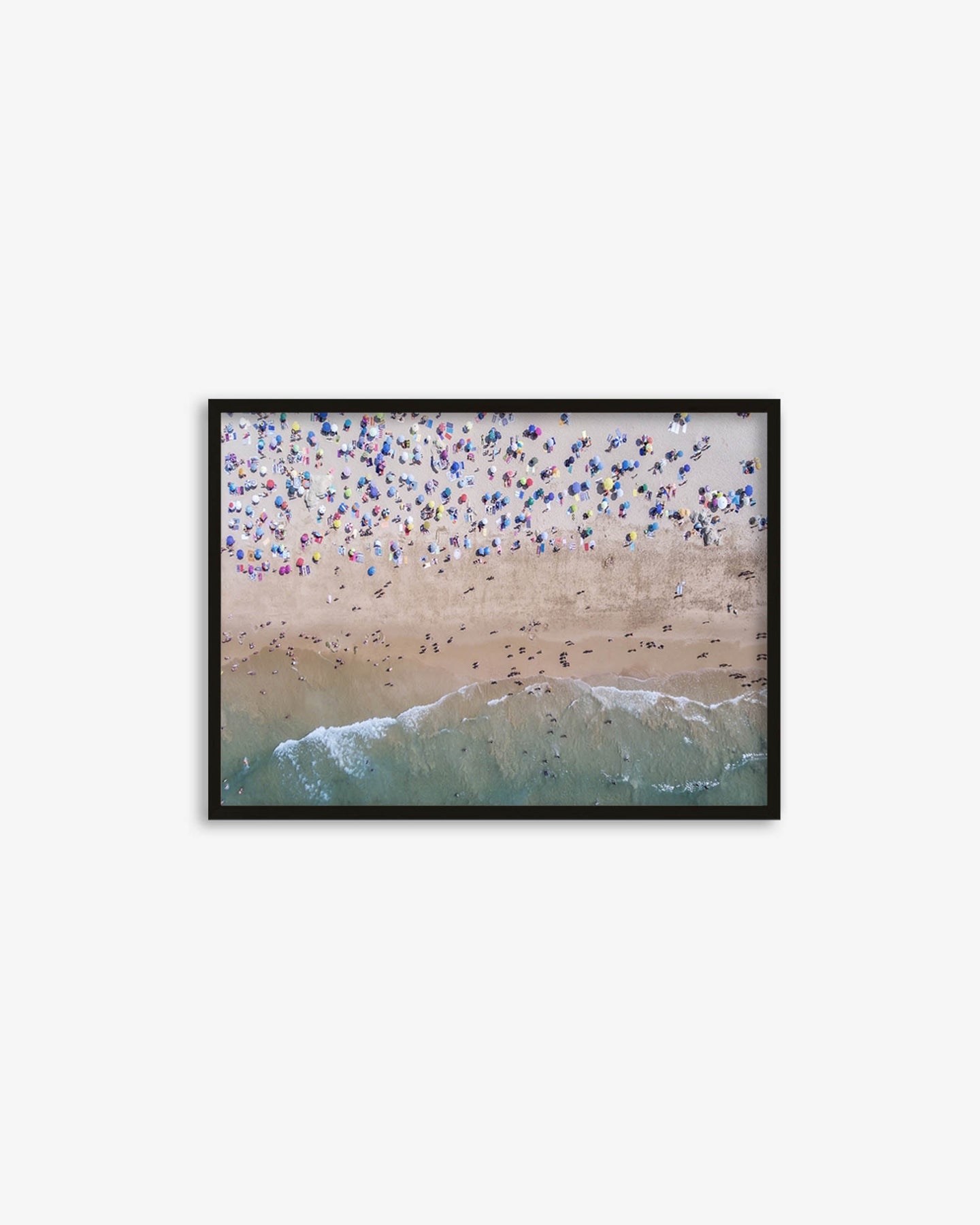 Capture the vibrant energy of summer with the Crowded Beach Wall Art Print. This stunning aerial photograph showcases a busy sandy beach and expansive seascape, bringing the dynamic beauty of coastal life into your space. Perfect for adding a lively, sun-soaked vibe to your room, this print invites the refreshing spirit of the shore right into your home.