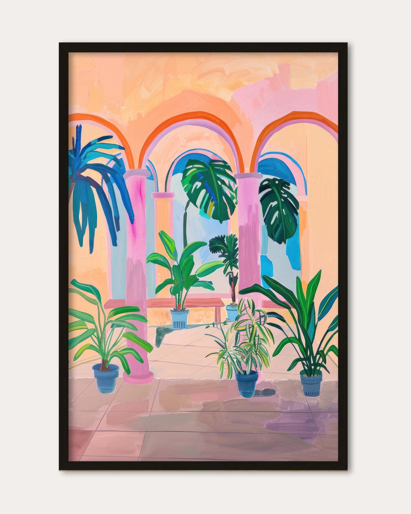 The Botanical Garden Wall Art features a vibrant painting that blends lush botanical elements with urban design. This captivating artwork brings a refreshing fusion of nature and city life to any space, perfect for adding a lively and modern touch to your décor.