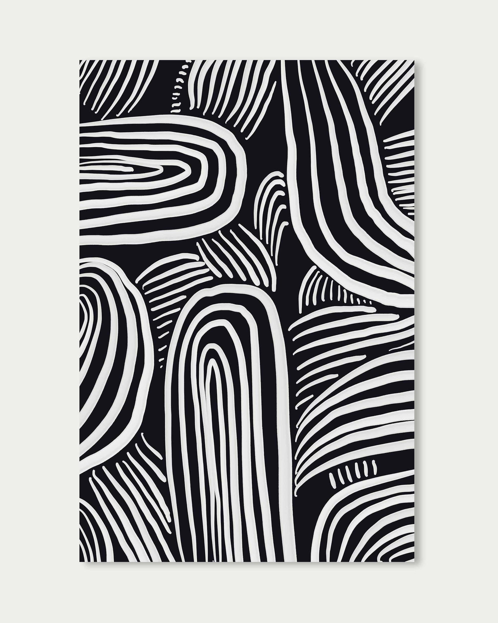 The Black And White Lines Wall Art Print features rich, deep layers of abstract lines in striking monochrome. This dynamic artwork adds bold contrast and textured depth to any space, perfect for enhancing your décor with a powerful and modern visual statement.