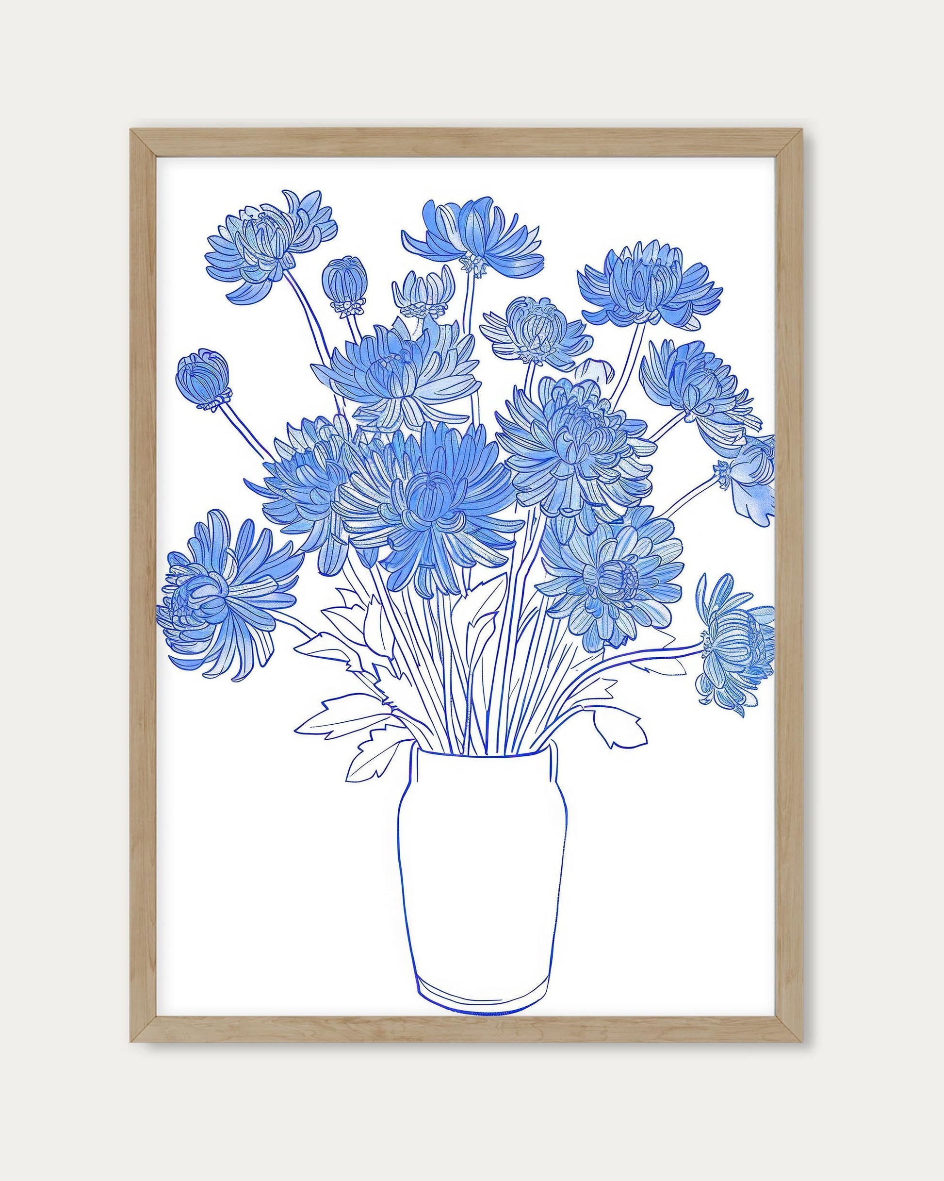 The Blue Flowers Sketch Wall Art features a minimalistic blue drawing of flowers in a pot, creating a delicate and elegant motif. This refined artwork adds a subtle touch of nature and modern simplicity to any space, perfect for enhancing your décor with understated beauty.