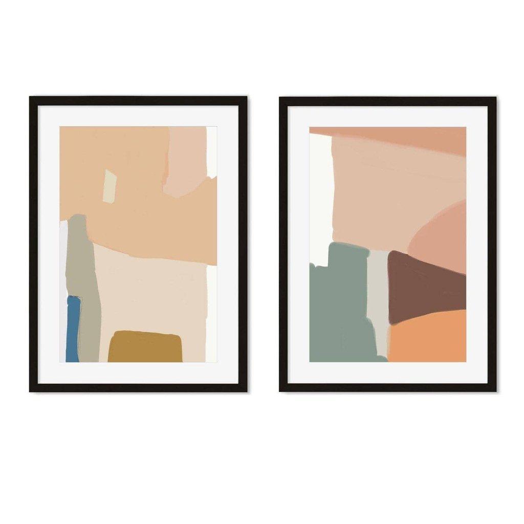 Modern Shapes - Print Set Of 2 Black Frame Wall Art Print Set Of 2 - Abstract House